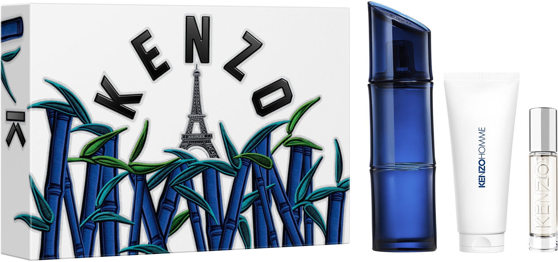 - une Eau de Toilette Intense Kenzo Homme Vaporisateur 110 ml et en CADEAU un Gel Douche 75 ml et un Vaporisateur de voyage 10 ml.