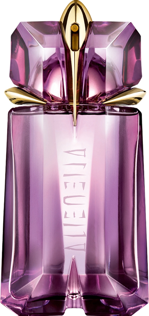 Si l’Alien Eau de Parfum incarne la lumière dense et enveloppante, l’Eau de Toilette en propose la version diurne, plus transparente, plus fluide. Le jasmin s’y déploie comme un rayon clair, le bois ambré se polit, et la signature se rapproche de la peau sans perdre son magnétisme. C’est la même aura, mais respirante, idéale pour celles qui veulent la tenue et la force du mythe, avec un pas de légèreté. Là encore, on reconnaît la main de Mugler : précision de la coupe, rigueur de la structure, sensualité mesurée.